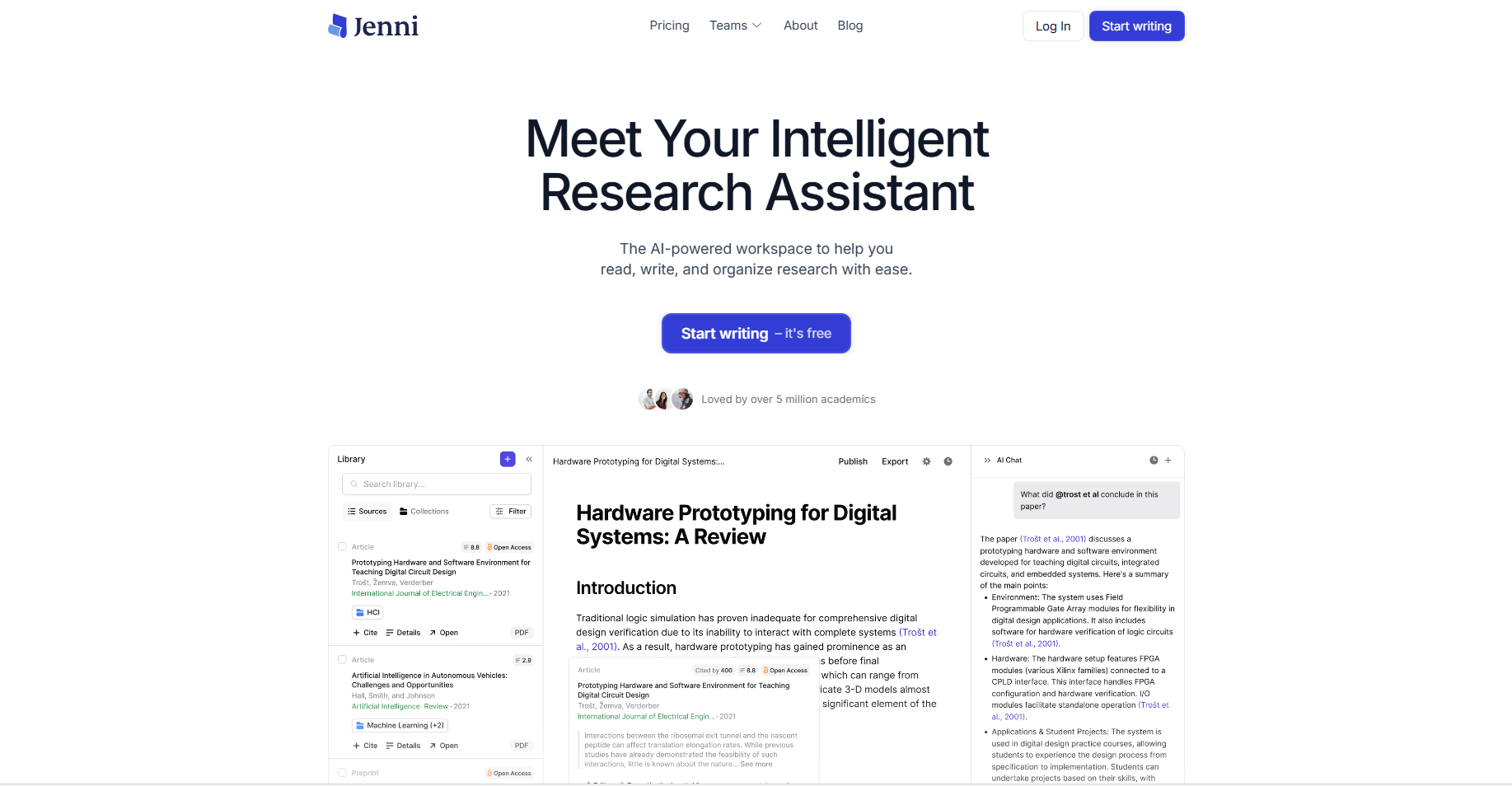 | Jenni AI | Academic Writing | Citation manager (2,600+ styles) and real-time autocomplete. | Yes | Freemium |