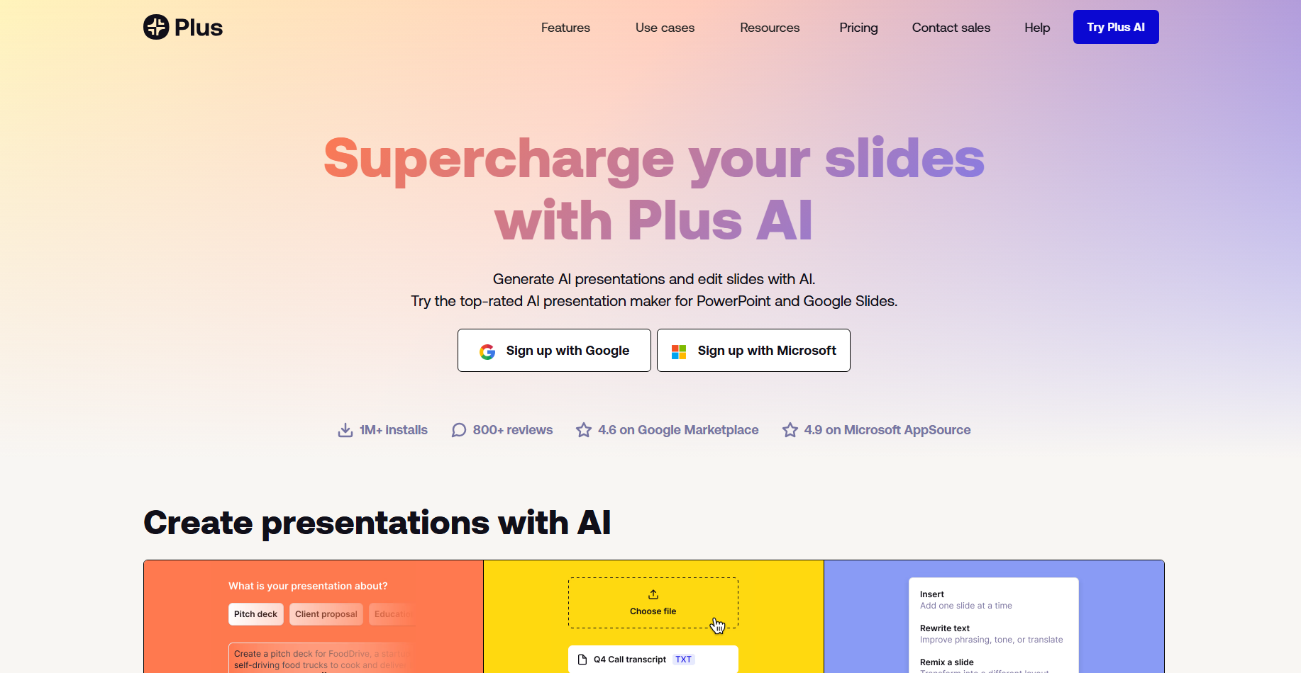 | plusAI | Presentation/Slideshows | Creates professional presentations from text or other slides. | Yes | Paid Add-on |