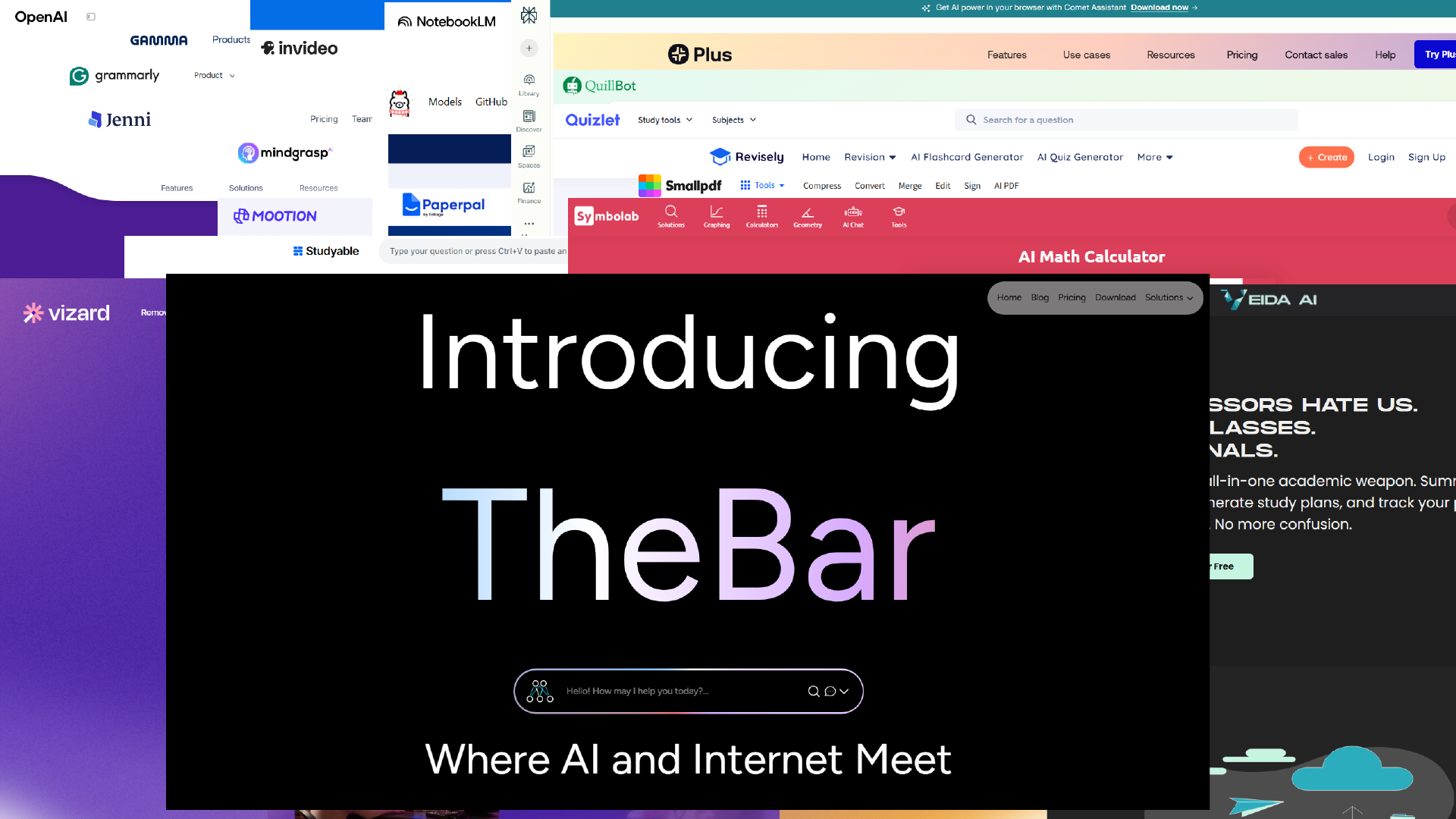 | TheBar | Academic Writing / Presentation / Slideshows / General Productivity | AI-powered writing assistant for academic papers, presentations, and slideshows. | No | Freemium |